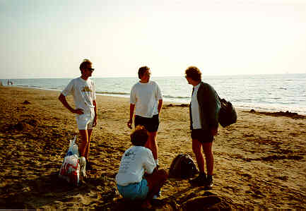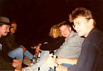 At the first Hack-Tic Beachparty. From left to right we see RowdyB, Martin(?), Noisetracker, (unknown) and Durkathlon (only Durkathlon being a TimeWasters).