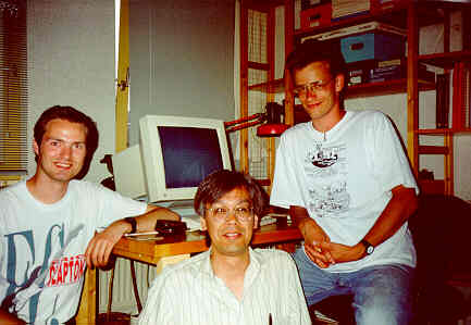 GigaWalt (left) and Durkathlon (right) visiting Wietse. Behind him is the console of wzv.win.tue.nl.
